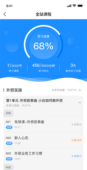 最近学习、课程大纲快速定位、学习进度